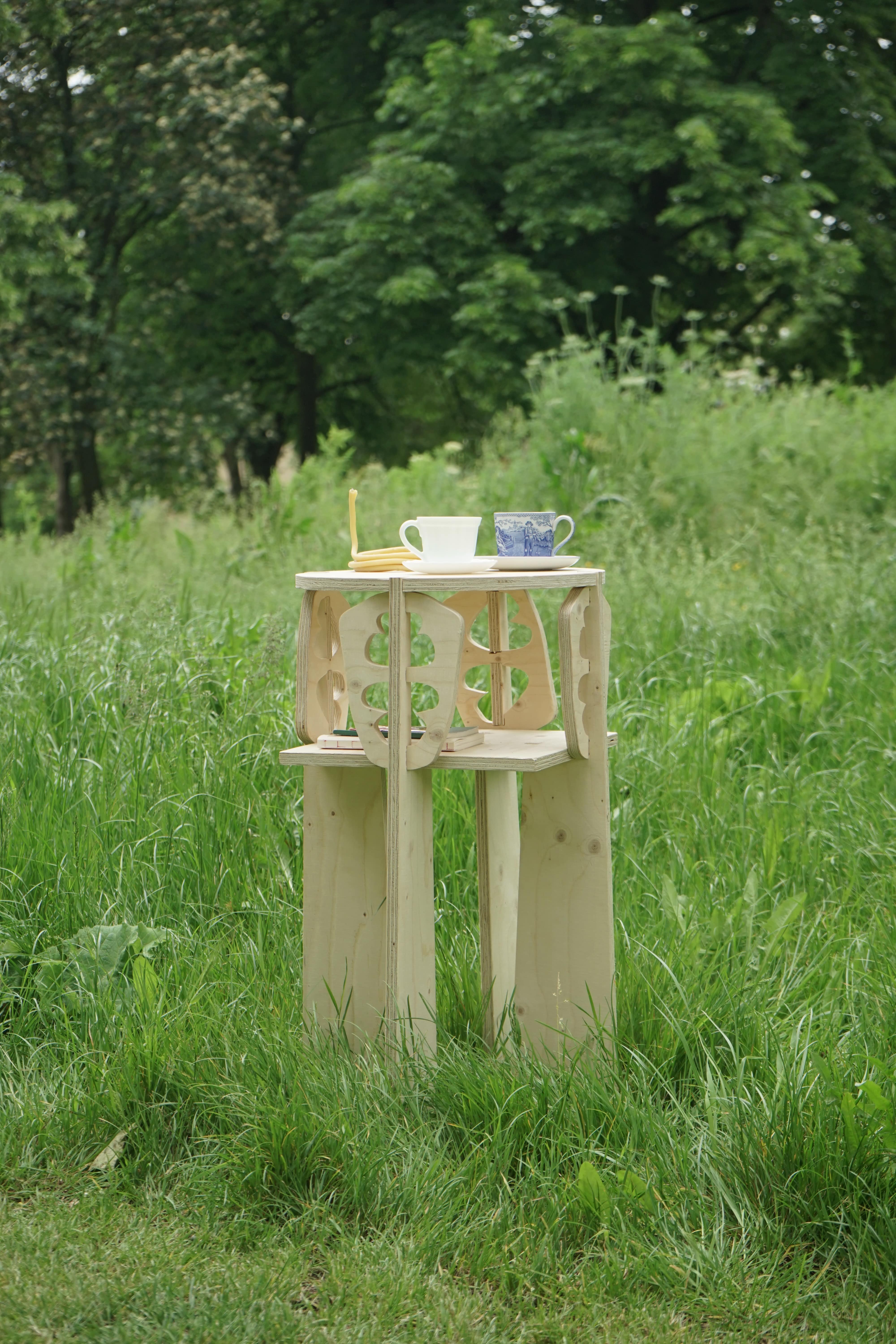 Inspired by Scottish architect and designers Charles Rennie Mackintosh and Margaret Macdonald Mackintosh’s work flourishes this wooden bedside table. Screwless, just clicks and holds itself together.